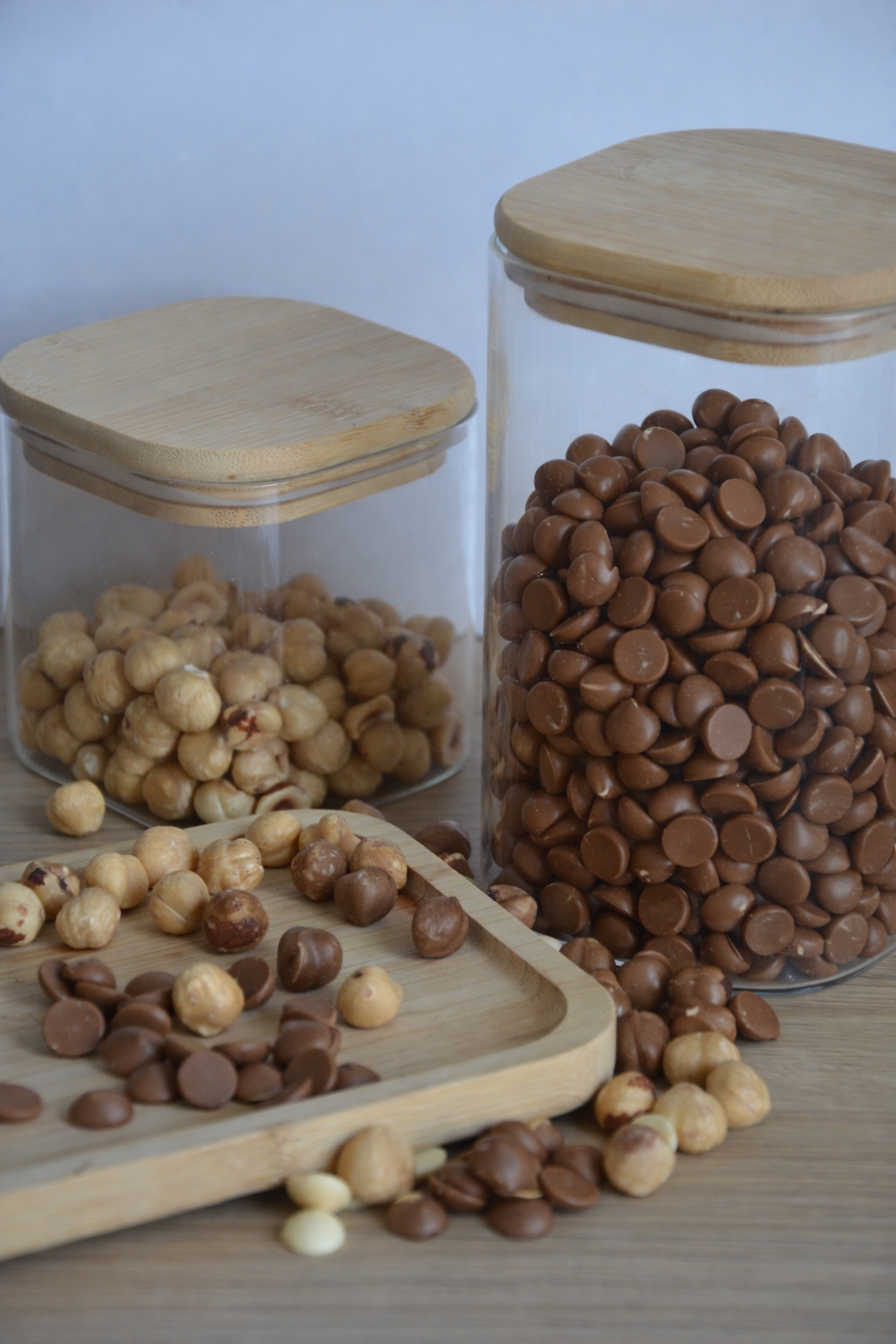 Ingrédients : nocciolata blanche maison et décor noisettes (noisettes, chocolat blanc, huile de pépin de raisin), farine, chocolat blanc, beurre, sucres, oeufs, bicarbonate alimentaire, arôme vanille, fleur de sel.