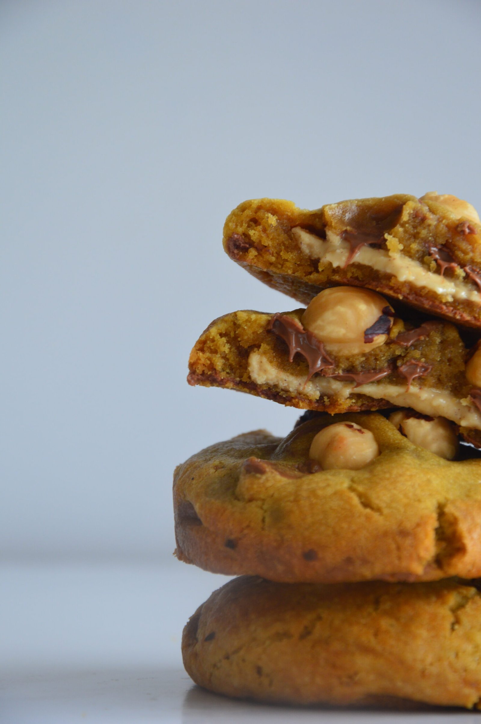 Un cookie à la nocciolata blanche maison, ça, c’est pas commun Food Lover. J’aurais pu me contenter d’utiliser une pâte à tartiner toute prête mais non, j’ai décidé de la faire moi-même pour te proposer un max de gourmandise…Si tu ne connais pas cette dinguerie, alors c’est le moment de remédier à ça !