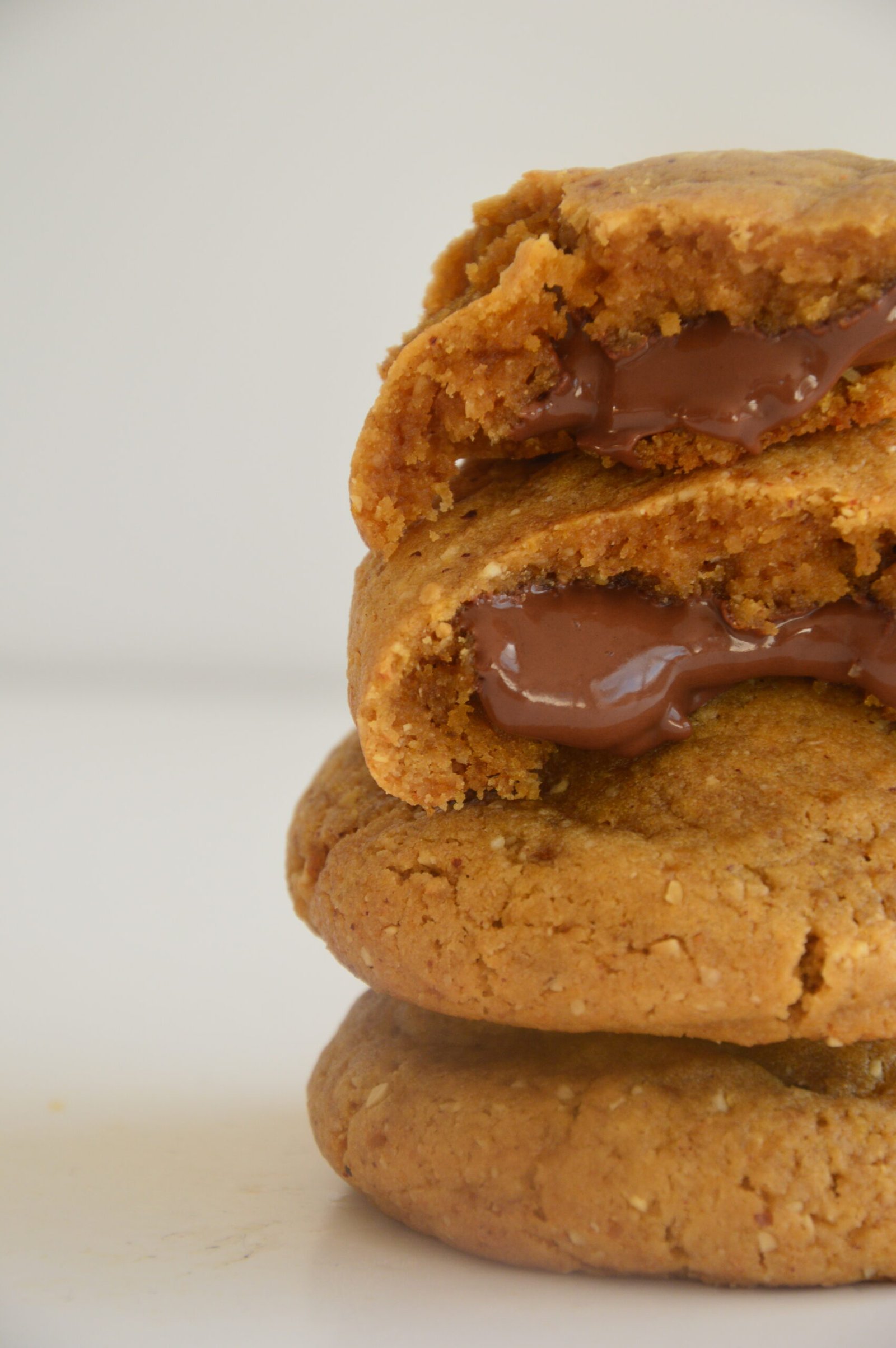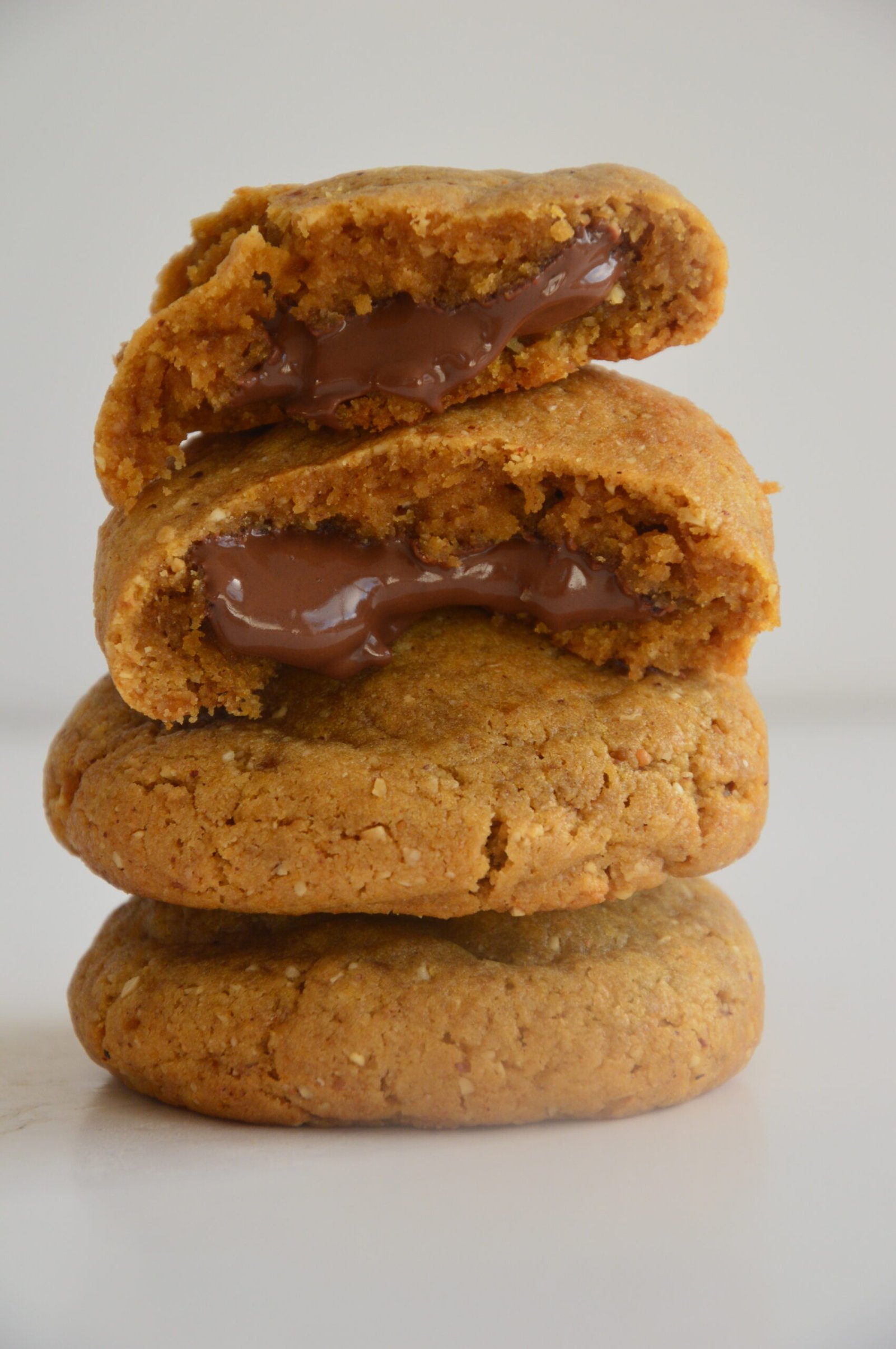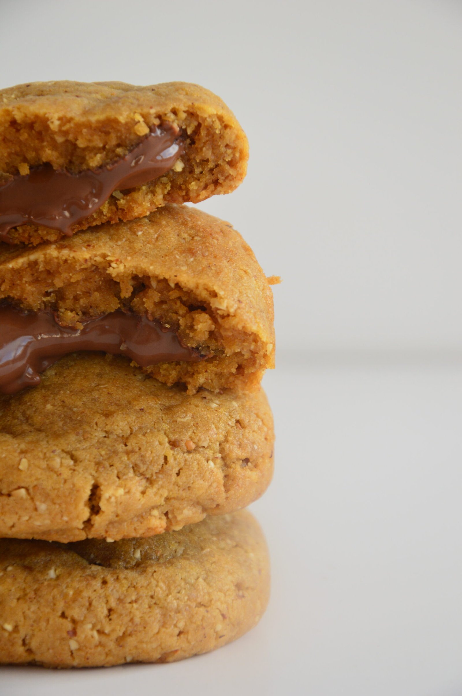 NUTTY NUT PRINCESS, bah faut pas aller chercher bien loin mon Food Lover, c’est bibi 😂 Et oui, le nutty nut princess, c’est moi, Angélina, “a princesa do monte d’alem” comme dirait mon père (ça veut dire “la princesse de la montagne lointaine”), un peu fofolle et qui adore la noisette. D’où ce nom peu commun qui résume assez bien qui je suis…en décalage, toujours 😂 Ce cookie est assez spécial car il est en grande partie composé de poudre de noisette, de praliné maison et de sirop d’érable et il ne contient pas de chocolat. En revanche, l’association de saveurs automnales combinées à un coeur coulant de nocciolata Bio Rigoni di Asagio ® est tout simplement une petite tuerie en barre dont tu auras du mal à te remettre mon Food Lover. Pour ça, tu vas être obligé d’en manger un, puis deux, pour être sûr d’avoir bien compris la p’tite claque que tu viens juste de te prendre en croquant dedans 😂 Crois-moi mon ami, ce cookie te promet vraiment un chouette moment de plaisir 😊💕
